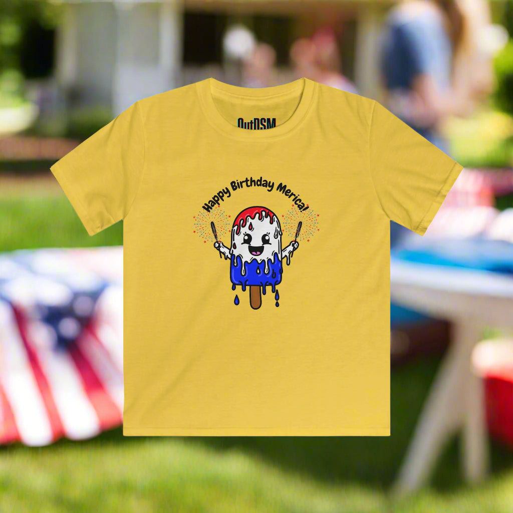 Make summer (and celebrations!) extra sweet with our American Popsicle Tee! It's the perfect way for your little one to show off their patriotic spirit in style. Made with soft, comfy fabric, it's ideal for backyard BBQs, fireworks displays, or just everyday fun. Kids will love the vibrant design starring a happy, melting, patriotic popsicle holding sparklers at little too close. It's the ultimate pick for Fourth of July, summer birthdays, or any day they want to spread some joy!