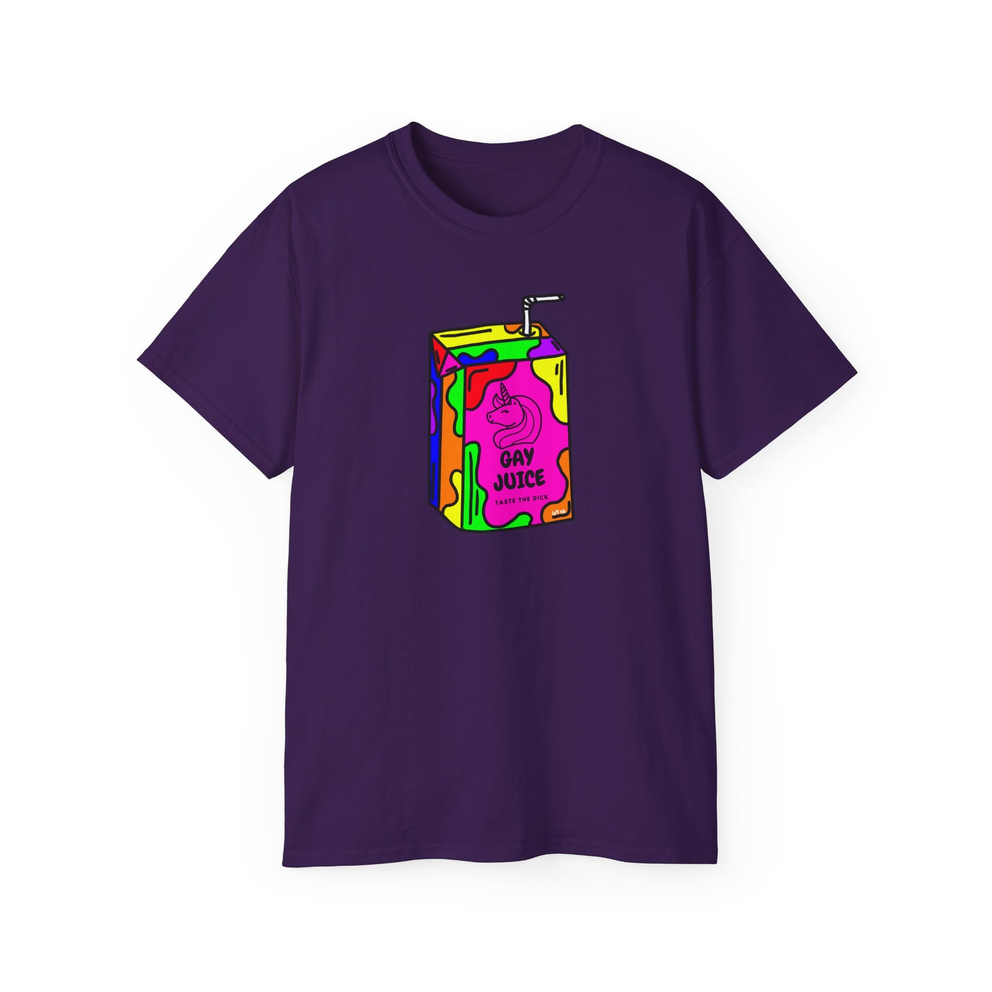 Ready for a taste of something truly unique? Quench Your Thirst with 69oz of pure Gay Magic with our Gay Juice Tee. Its vibrant rainbow colors & whimsical unicorn, deliver a celebration of bold humor, and a statement that you're here to live life on your own terms. This shirt is for those who live life uninhibited and love to push boundaries.