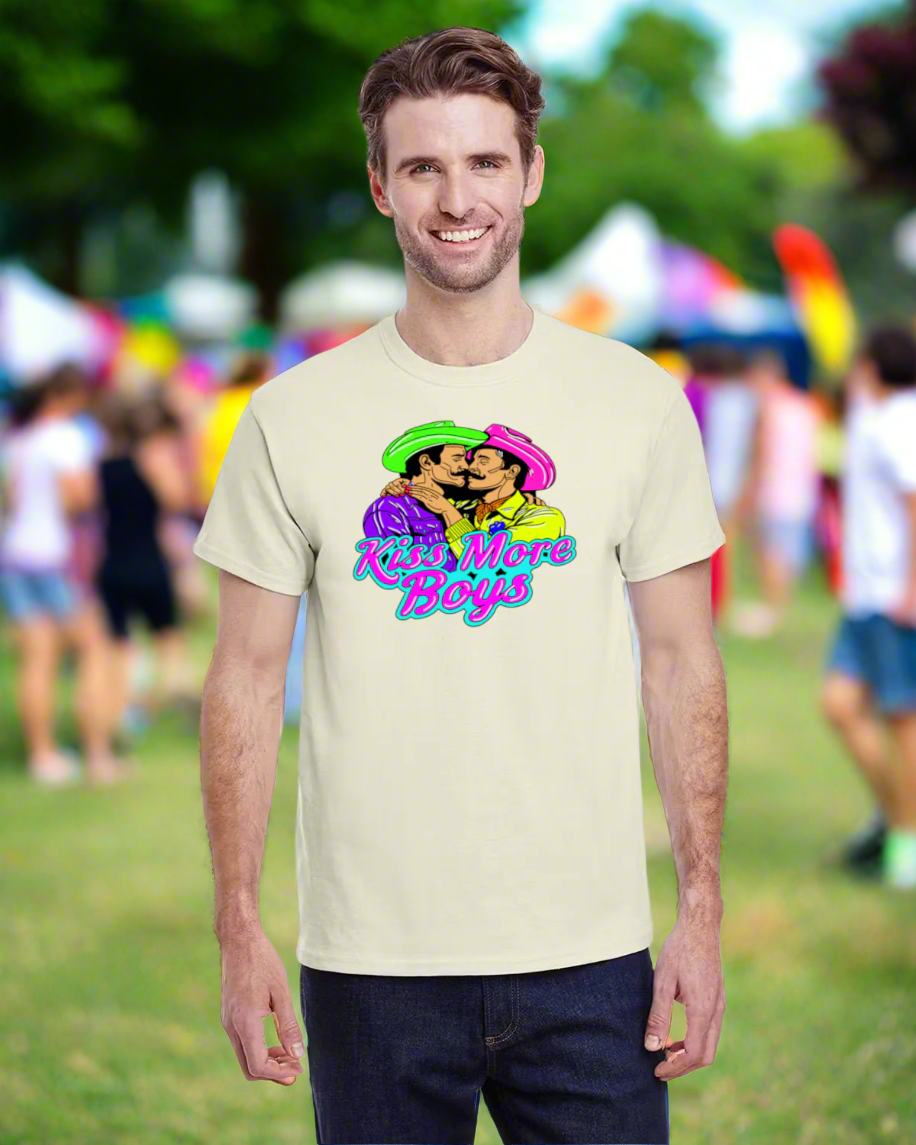 Yeehaw, Honey. This design is for the fearless, the fabulous, and anyone who knows that true grit comes with a side of glitter & a whole lot of affection. Wear it loud. Wear it proud. Wear it while you're breaking hearts and societal norms. This is the tee for those who know that real strength lies in loving exactly who you want. Kiss More Boys!