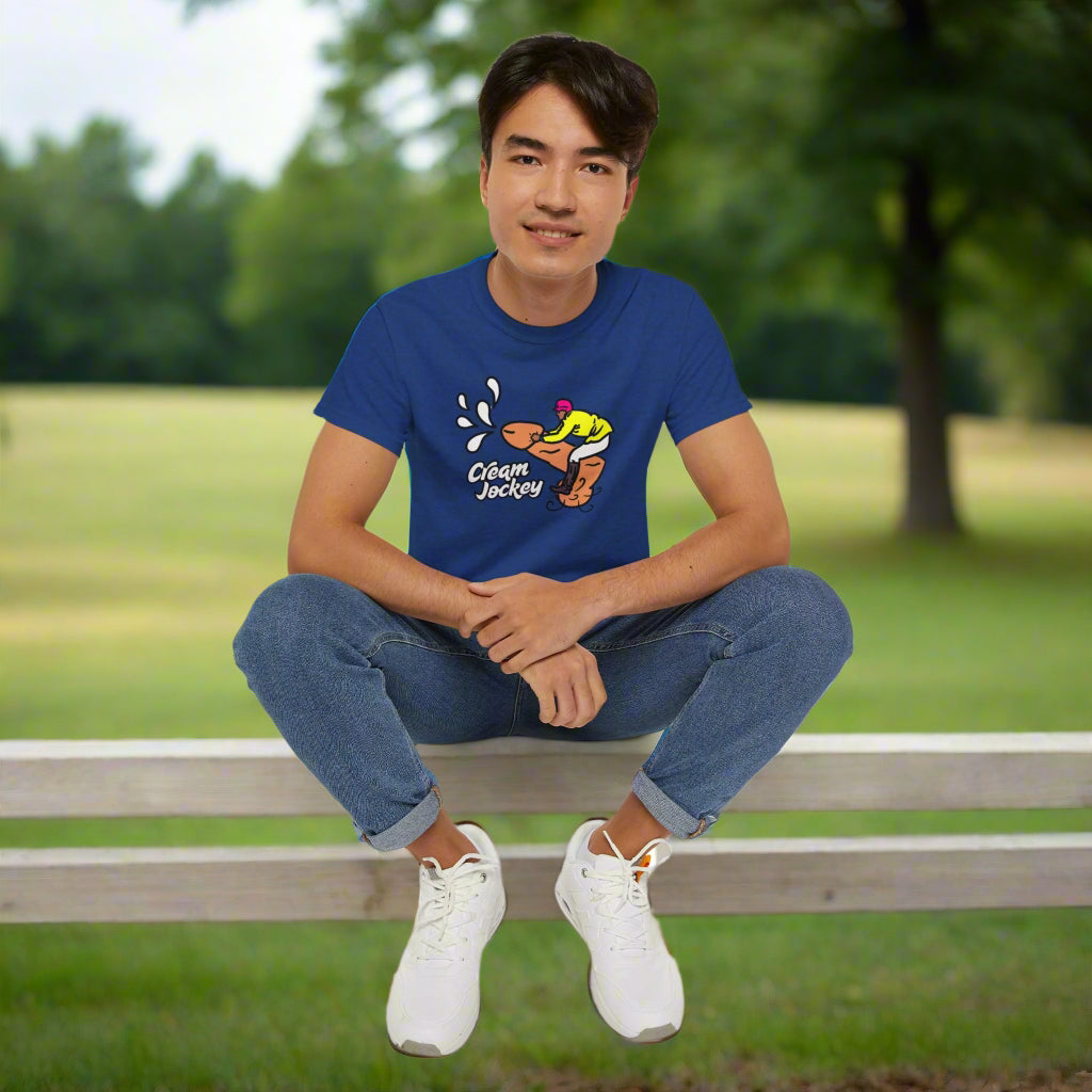 Get ready to gallop! Make a statement that can't be ignored with our "Cream Jockey" t-shirt. This tee features an audacious jockey riding a hard one, designed for those who embrace their wild side with humor and confidence. It's provocative, it's playful, and it's guaranteed to turn heads. Stand out, loud and proud.