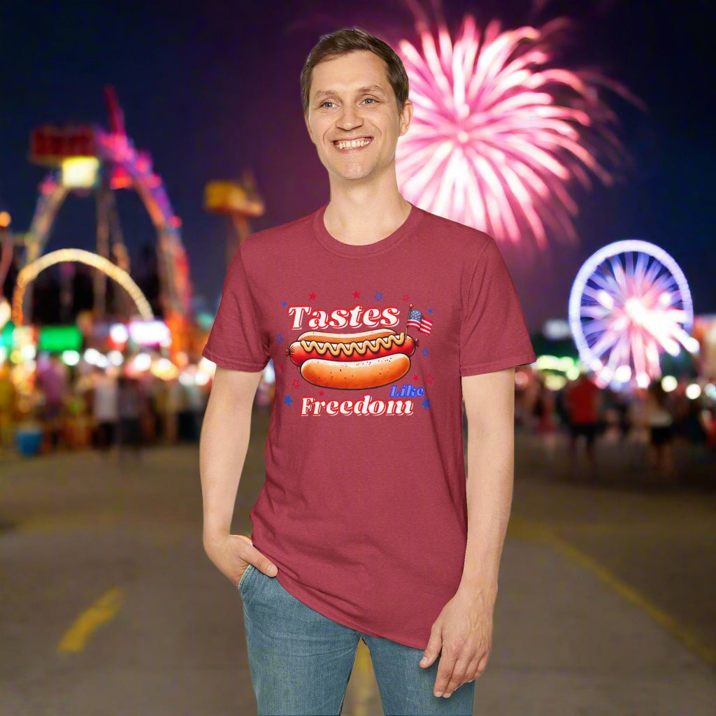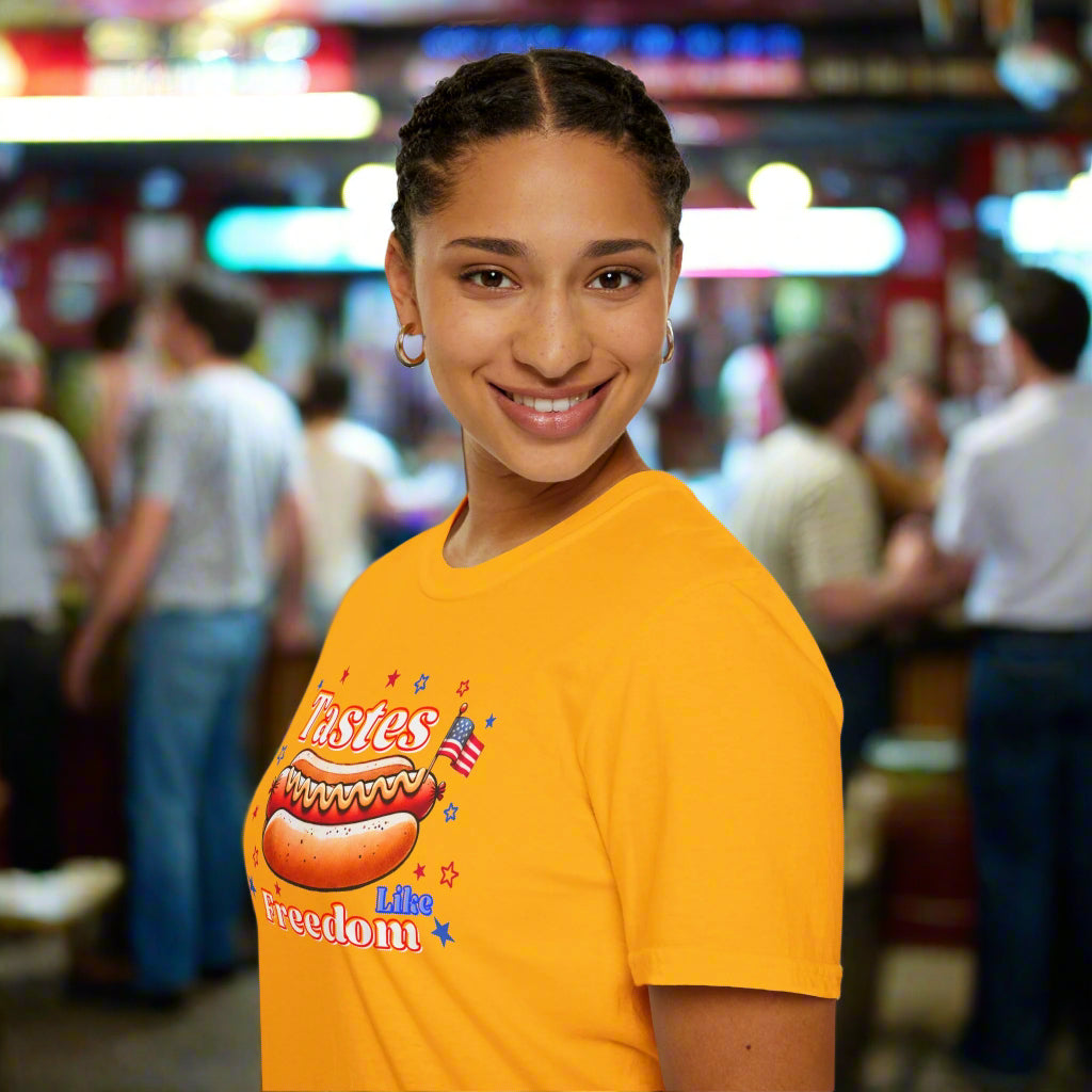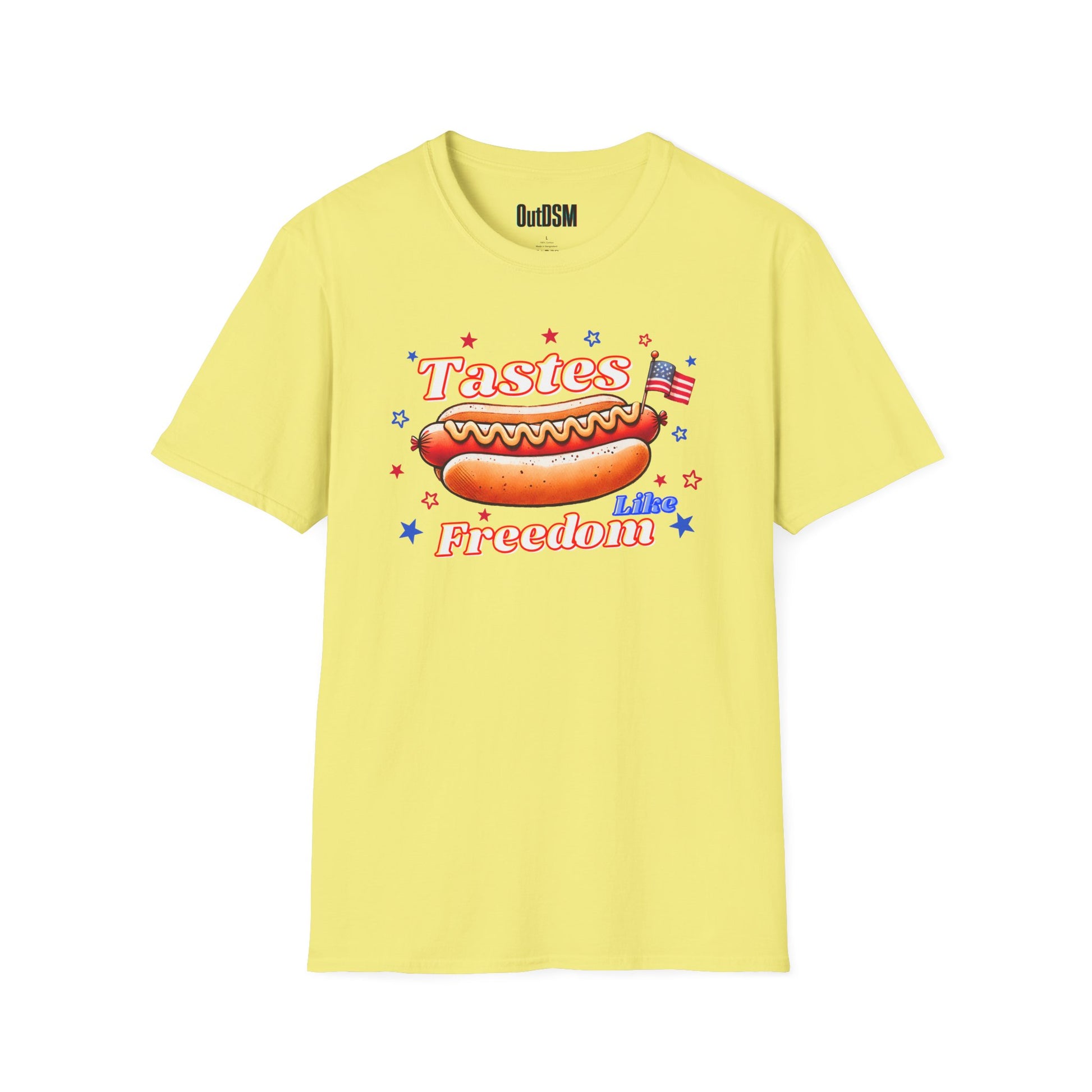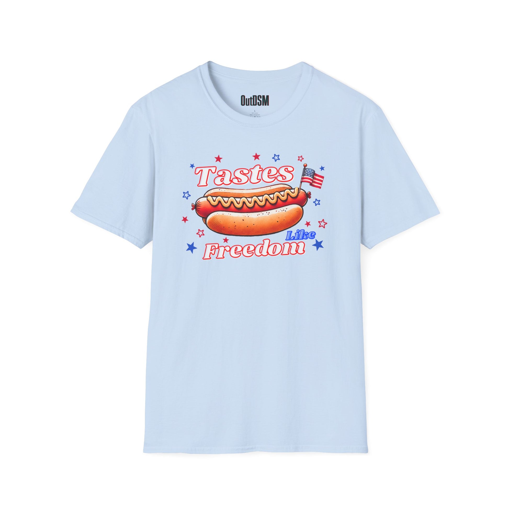 This isn't just a hot dog; it's a declaration. Our "Tastes Like Freedom" tee rips into the heart of American grit and the unapologetic spirit that built this nation. Take a bite out of Americana and remember the backyard barbeques, 4th of July Fireworks and that endless summer feeling. Grab yours today and let freedom ring (and taste delicious)!