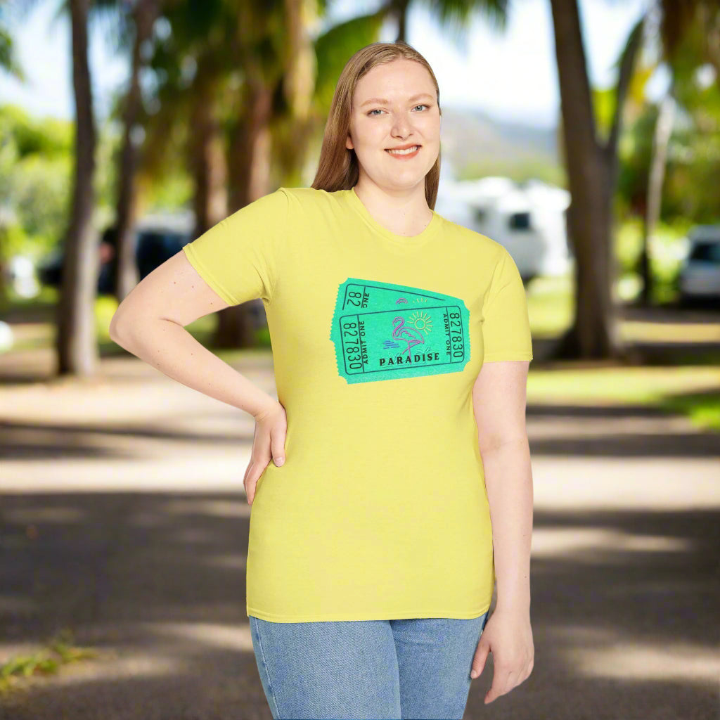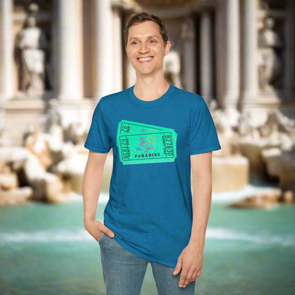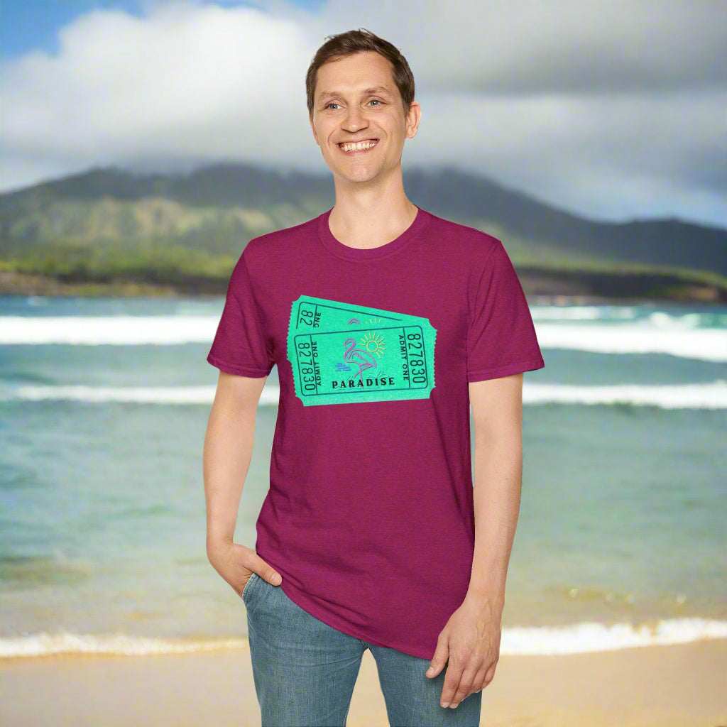 Dreaming of sun-kissed beaches, endless relaxation, and pure bliss? Grab your passport (or just this awesome tee)! Featuring two vintage tickets, and the perfect destination, this tee is a wearable reminder that paradise isn't just a place; it's a state of mind you can carry with you. Slip it on and let your imagination whisk you away. Where will your tickets take you?